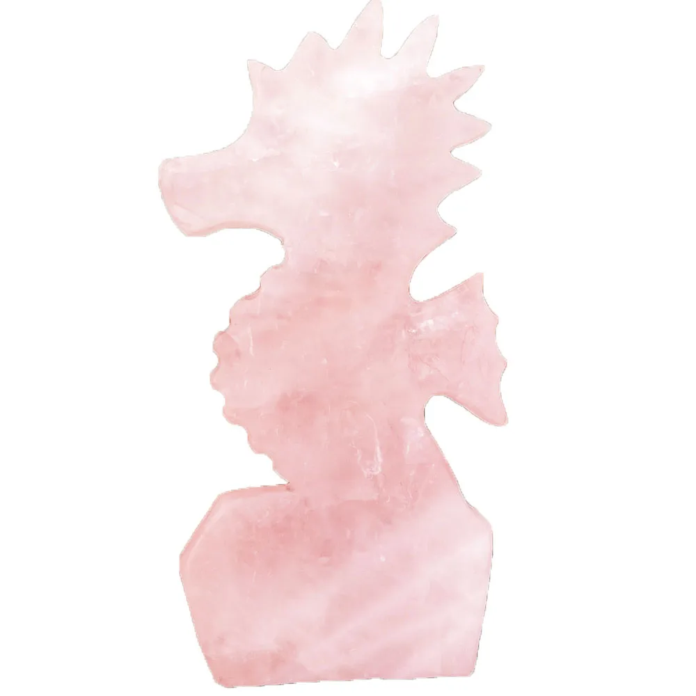 Natural Pink Crystal Carving Rose Quartz Sea Horse Statue Hand Carved Crystal Healing For Family Or