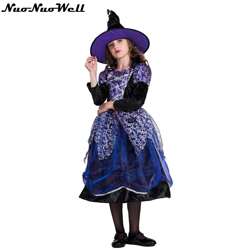 HOT Sale Halloween Party Children Kids Cosplay Witch Costume Girls Halloween Costume Party Purple Witch Dres