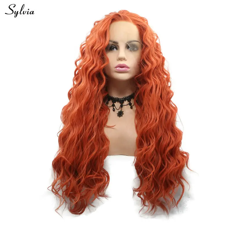 Sylvia Bouncy Curly Synthetic Hair Orange Lace Front Wigs for Peluca Cosplay Natural Hairline Long