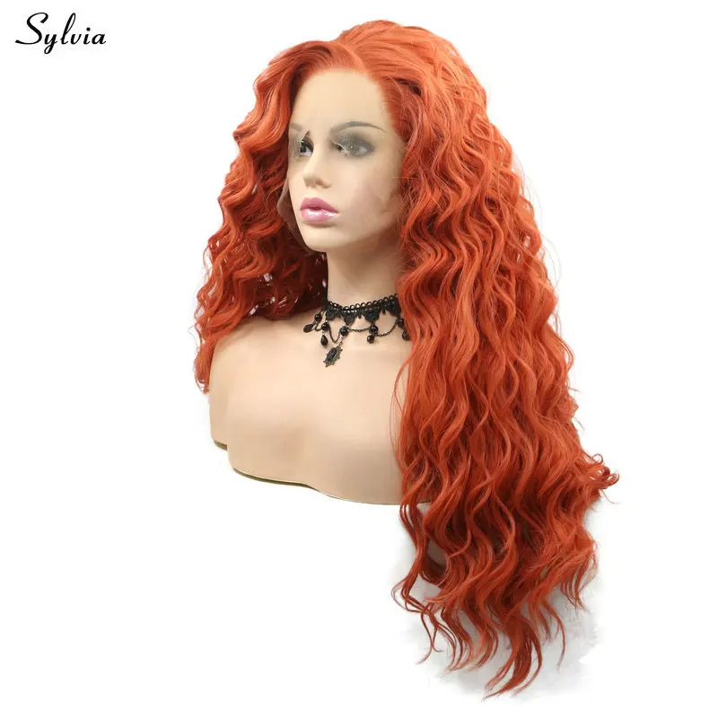 REVIEW TOP SELLER Sylvia Bouncy Curly Synthetic Hair Orange Lace Front Wigs for Peluca Cosplay Natural Hairline Long